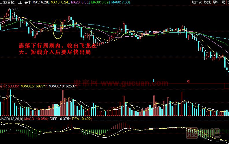 4.對(duì)于均線系統(tǒng)往下走時(shí)的飛龍?jiān)谔?,持股時(shí)間要短。