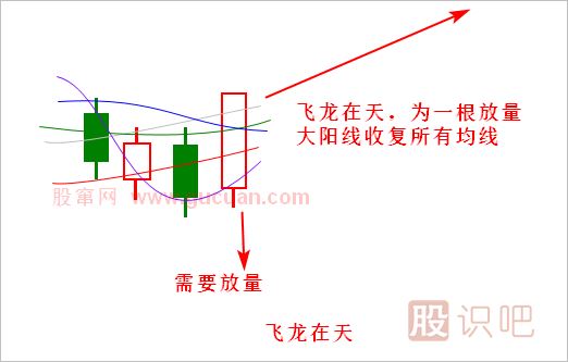 2.飛龍?jiān)谔煨枰桓?yáng)線一次上穿所有均線壓制,且放量。