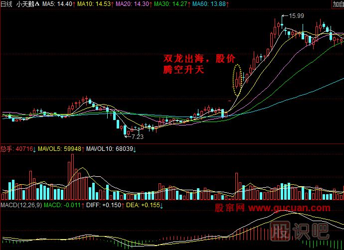 1.雙龍出海是股價(jià)騰空前震倉(cāng)洗盤的信號(hào)。