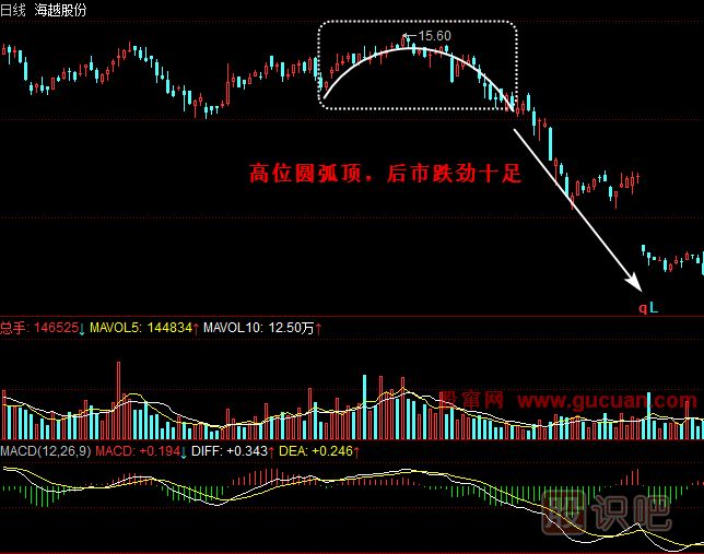2.圓弧頂形成后一定要果斷拋售。
