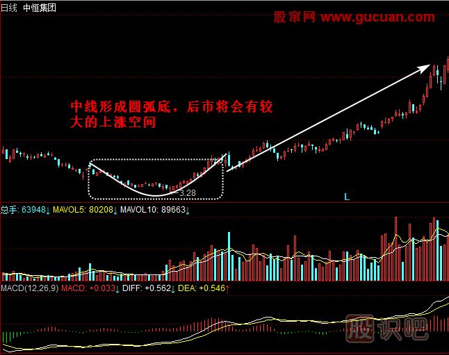 3.圓弧底構筑期間可分批嘗試性買入,一旦突破圓弧區(qū)域后繼續(xù)加倉買入。