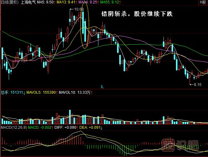 2.錯(cuò)陰斬殺K線組合的出現(xiàn),是股價(jià)將下跌的標(biāo)志,投資者應(yīng)當(dāng)賣出。