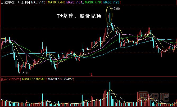 3.死亡墓碑K線組合變異為T+陰線時(shí)是見頂信號(hào),部分個(gè)股短期殺跌后略有反彈。