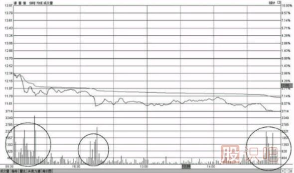 股票指標(biāo)技術(shù)分析強(qiáng)調(diào)分時(shí)圖早盤出現(xiàn)大賣盤放量打壓下跌形態(tài)的操盤技巧