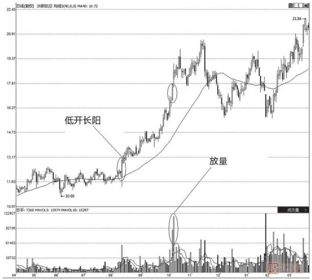 (1)量為價先,首先見到放量,然后再見到價格上漲。投資者要對股票在低價區(qū)內(nèi)頻頻放量的個股,給予高度的重視。