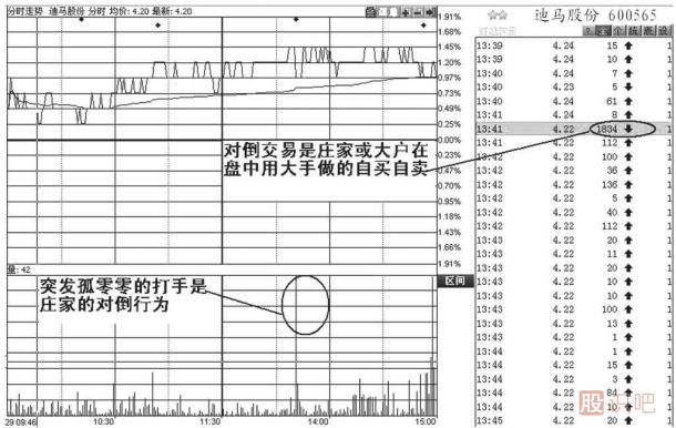 (5)前一個交易日成交并不活躍的股票,當日盤中以大單成交開盤,是典型的主力對倒行為。