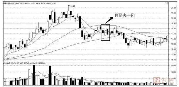 1.兩陰夾一陽K線組合的形態(tài)特征
