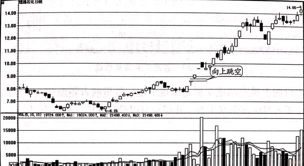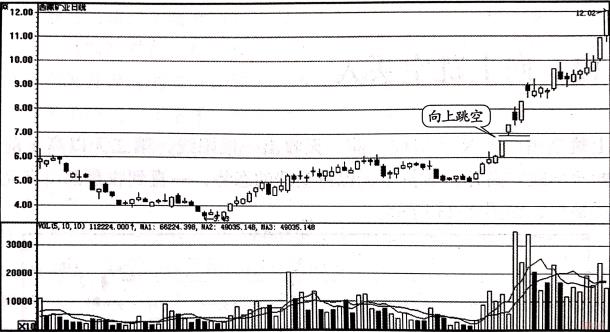 (2)股價(jià)向上跳空的成交量是呈現(xiàn)出逐步放量或者是溫和放量的現(xiàn)象。