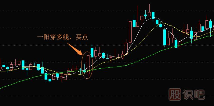 當(dāng)股價橫盤整理一段時間后,其多條均線往往會持續(xù)糾在一起。此時如果出現(xiàn)一根長陽線,一舉向上穿越多條均線,就形成了一陽穿多線的形態(tài)。