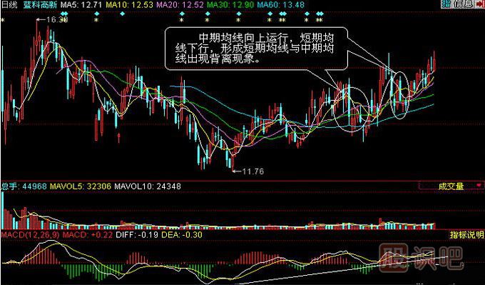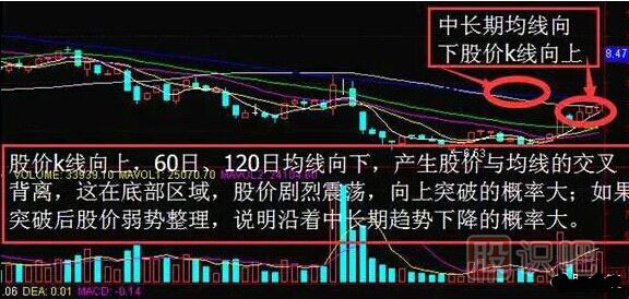 2、 股價與均線背離現(xiàn)象: