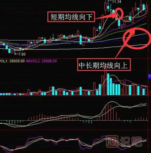 當中長期均線的方向與股價方向相同的時候,市場會出現(xiàn)兩種情況,即均線的多頭排列和空頭排列。無論上漲時的多頭排列還是下跌時的空頭排列,股價的運動方向將與均線運行的方向一致,趨勢的意義就在于此。當股價處于上升趨勢中,均線運行方向向上,在股價下面托著股價向上運行,此時如果出現(xiàn)股價回調的話,則向下的股價方向與向上的均線方向相反,此時,當回調到位后股價自然在均線的推動下重新向上。