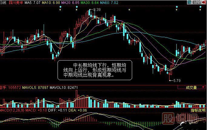 均線背離現(xiàn)象在實際抄做中經(jīng)常能夠遇到,所謂均線背離是指一是當股價下跌見底后,從底部上漲時,此時中長期均線的運行方向一般都是向下的,當股價突破一條均線以后,股價的運行方向與所突破均線的方向是“交叉”并相反;或者另一種情況是指當股價上漲見頂后,快速下跌的過程中,此時的中長期均線的運行方向仍然向上,而股價快速擊穿一條中長期均線后,股價方向向下,而被擊穿的均線方向確是向上的,股價與被擊穿的均線方向也是“交叉”并相反,這就是均線背離。