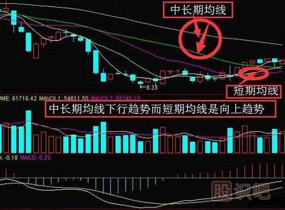 同樣道理,當股價處于下跌趨勢時,如果出現(xiàn)反彈的話,一旦股價反彈后遇到向下壓的均線時,自然會遇到阻力而重新下跌。