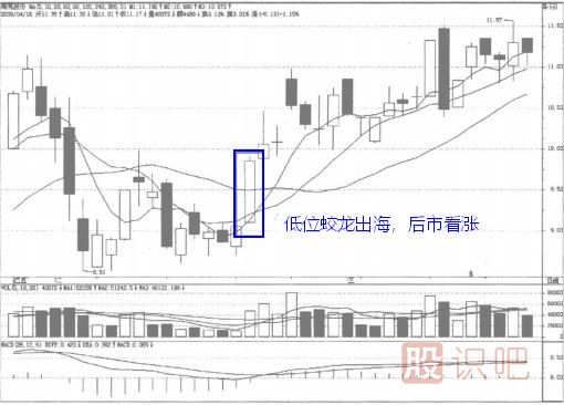 移動平均線入門第十節(jié)蛟龍出海圖形特征由1根K線和3根移動平均線組成,大陽...