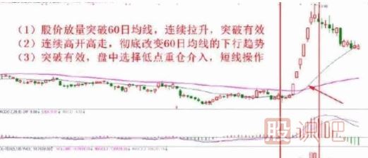 1、突破60日均線時(shí)要有明顯放大的成交量配合,隨后股價(jià)能夠站穩(wěn)于60日均線之上,否則后市可能還有較長(zhǎng)時(shí)間反復(fù)。