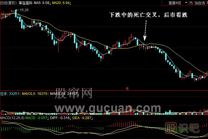 (3)下跌趨勢中均線死亡交叉,后市看跌,擇機(jī)離場。