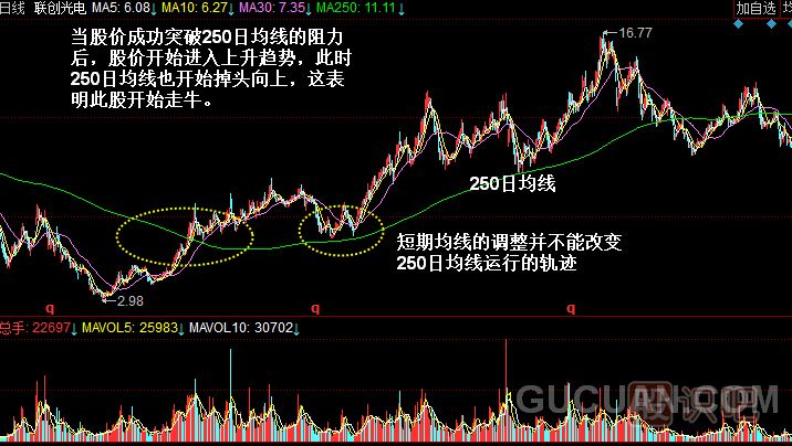 由于250日均線周期較長,無法指導(dǎo)短線操作,所以一般都被用來判斷大盤趨勢。