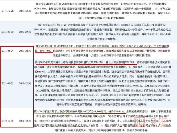 圖1 湯臣倍健2010-2011業(yè)績預增