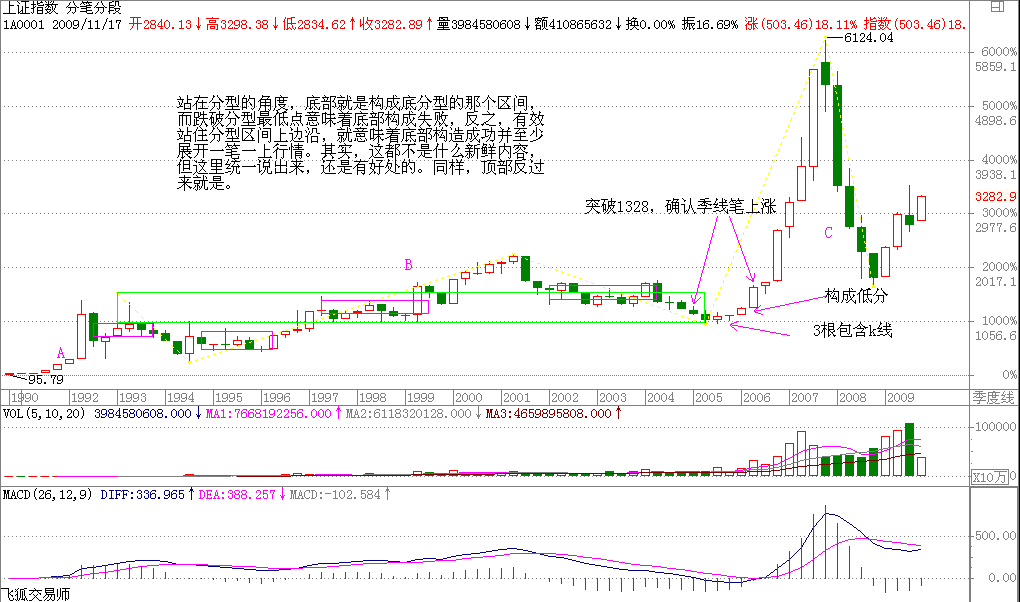 即2006年5月12日《G股是G點,大牛不用套纏論中樞公式給您議G股是G點大牛不用套!》纏股市開篇第一課之后,歷時半年纏于2006-06-07 18:08:15為什么開始寫教你炒股票1:《不會贏錢的經濟人,只是廢人!》?請看纏的第十課后我的配圖就一切都明白了。整個108課,纏帶領著大家經歷了一個完整的上漲啟動和下跌的結束,她在08年8月教你炒股票108:何謂底部?從月線看中期走勢演化(2008-08-29 09:15:01)一文中明確教大家在此處的分型的判斷中如何確立底部分型到2008年10月底確立后。課文也隨著她的2008-10-10 09:24:36《無話可說》結束了全部課程。